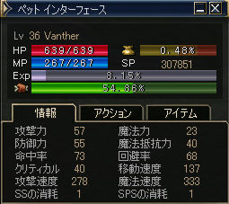 Lv36 装備有り フェンリルの牙:ウルフ用ミスリルアーマー