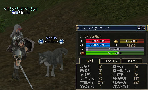 Lv37 装備有り フェンリルの牙:ウルフ用ミスリルアーマー