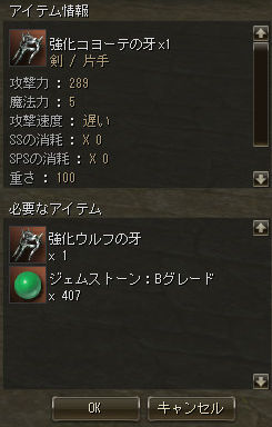 装備ランクアップに必要なものはBジェムのみ!